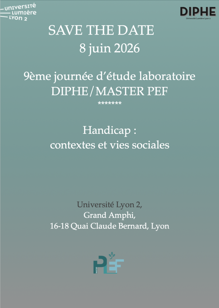 La 7ème Journée d’étude du laboratoire DIPHE et du MASTER PEF « Psychologie de l’Éducation et de la Formation », parcours « Développement, éducation et handicap » aura lieu le 4 juin sur la thématique du temps et de l’espace, pour questionner la causalité et les cadres épistémologiques dans la recherche en psychologie.
